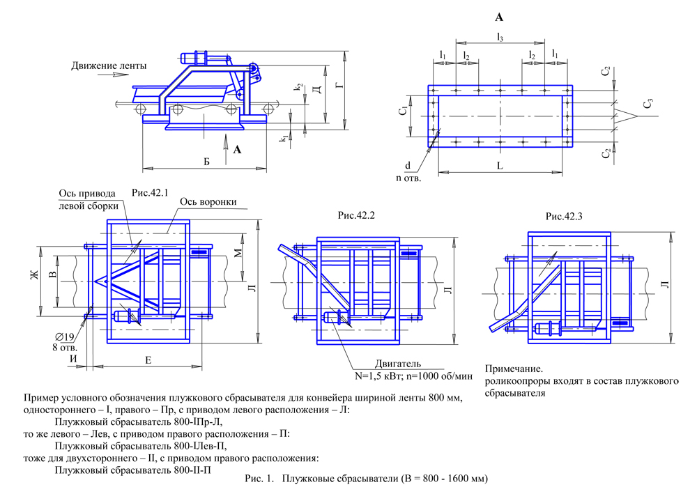 Данные устройства в зависимости от направления разгрузки с ленты конвейера могут быть односторонними (правые, левые) или двусторонними.