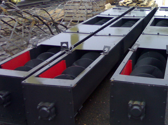 Шнек в желобе — это открытая поверхность с винтом, в которой по впадинам перемещается необходимый материал. Такие транспортировщики грузов используется для транспортировки сыпучих материалов, штучных и мелкокусковых грузов – до 3,5 тонн на кубический метр (песок, бетон, цемент, мука, зерно и др.). Шнековый конвейер может перевозить груз как по горизонтальным и вертикальным поверхностям, так и под углом. Он состоит из неподвижного желоба, который прикрыт сверху люком или крышкой. Транспортировка осуществляется за счет вращения винта по желобу.